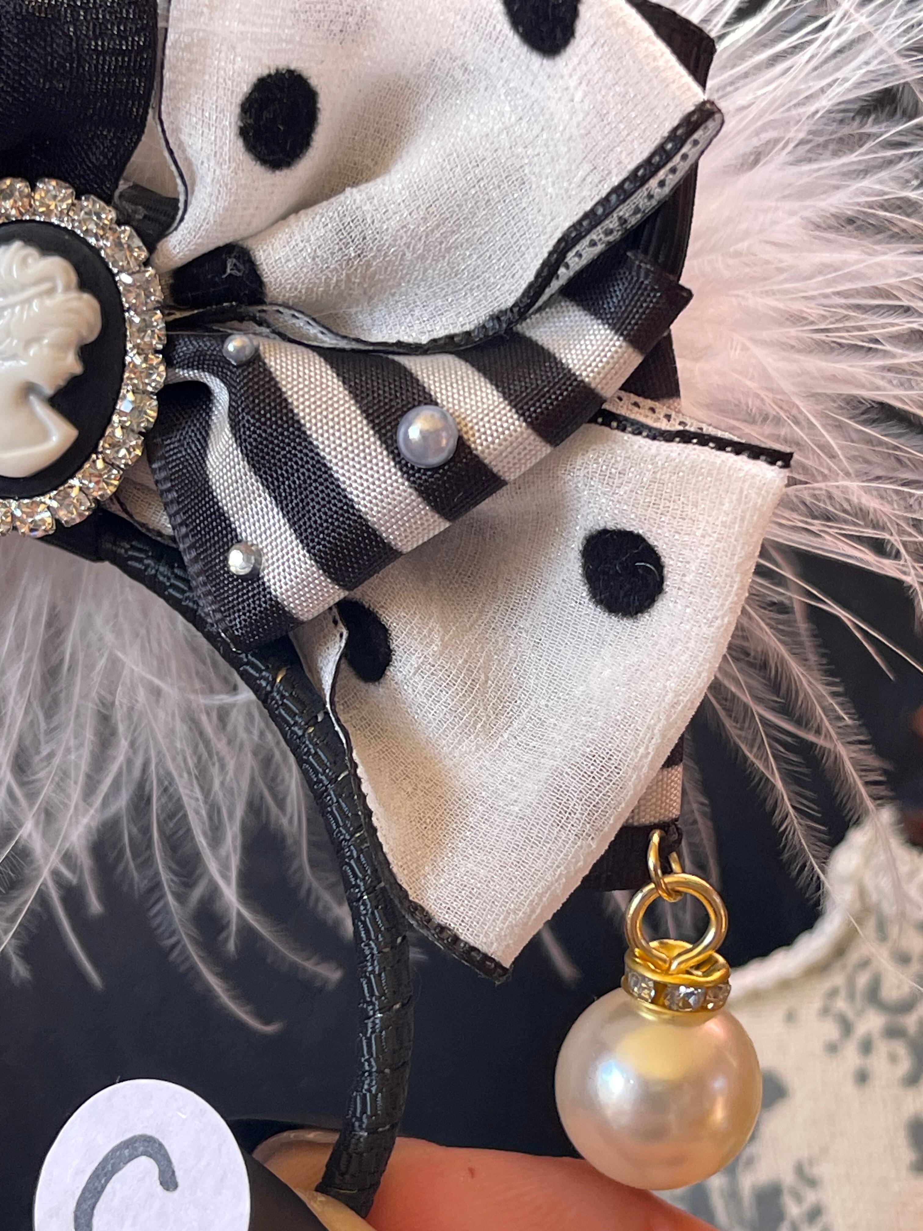 ※リボンカチューシャの(写真)右下にジュエリーチャームやレースなどを付けるオリジナルの下がりデザインです。