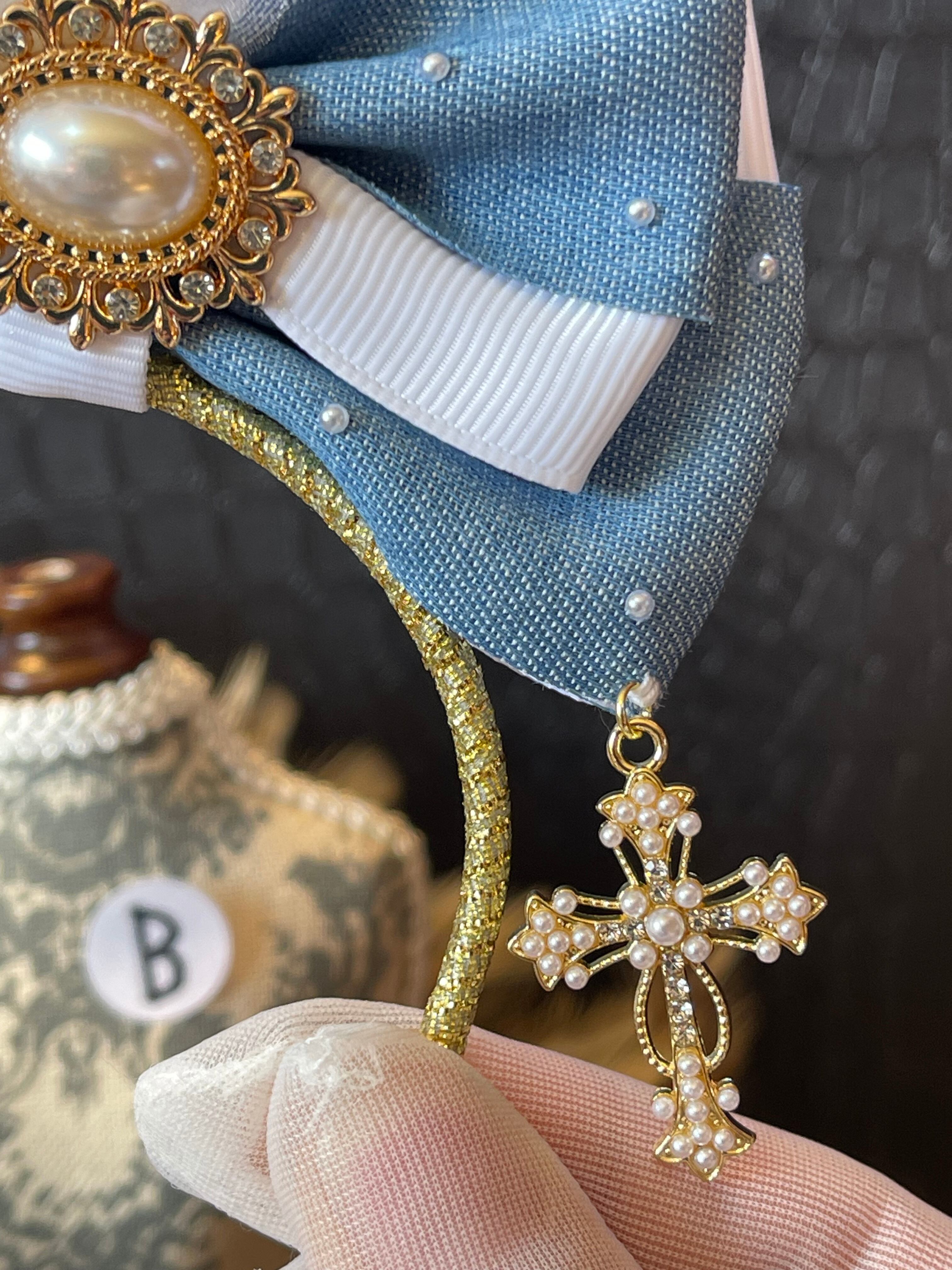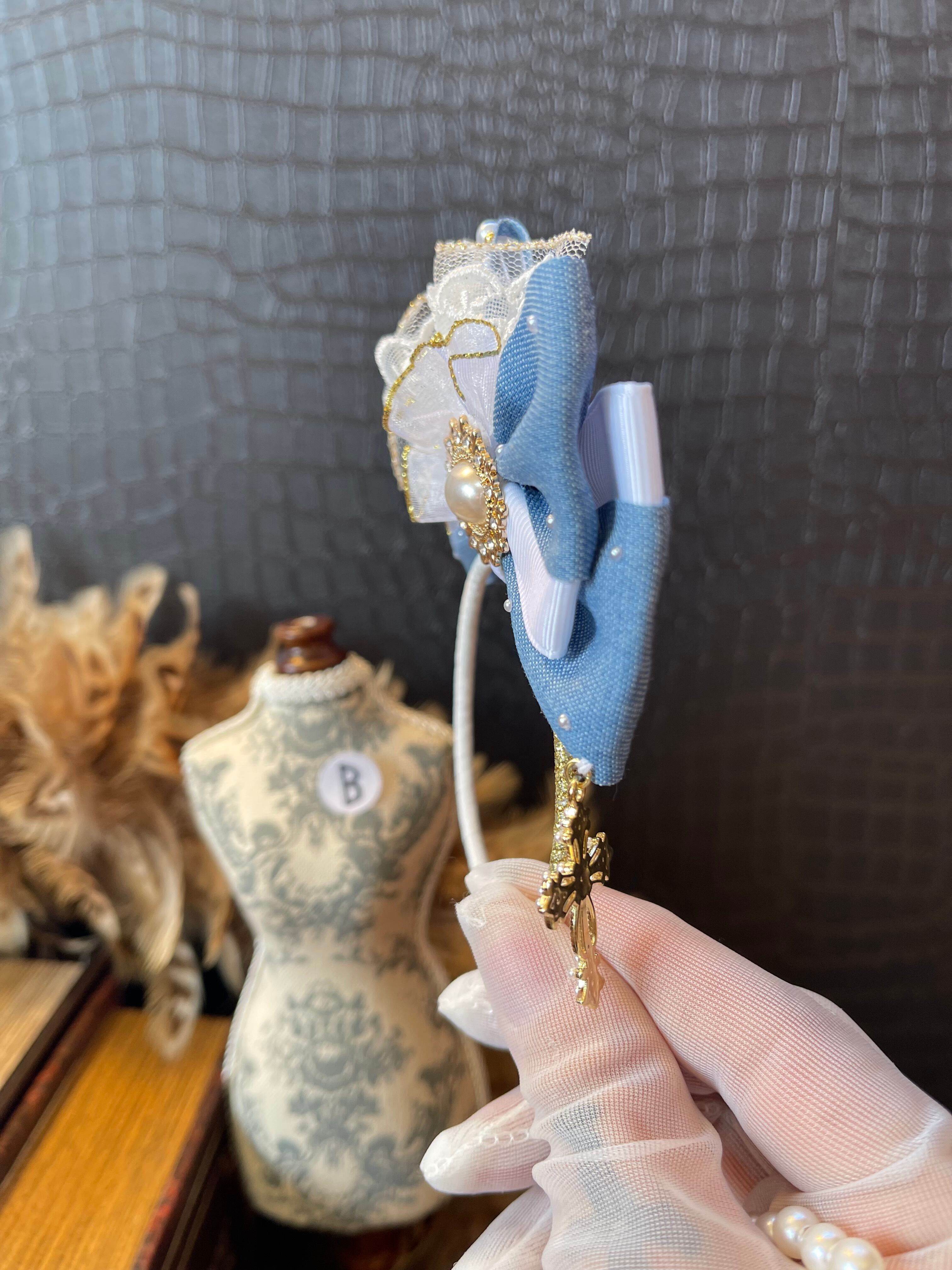 ※リボンカチューシャの(写真)右下にジュエリーチャームやレースなどを付けるオリジナルの下がりデザインです。