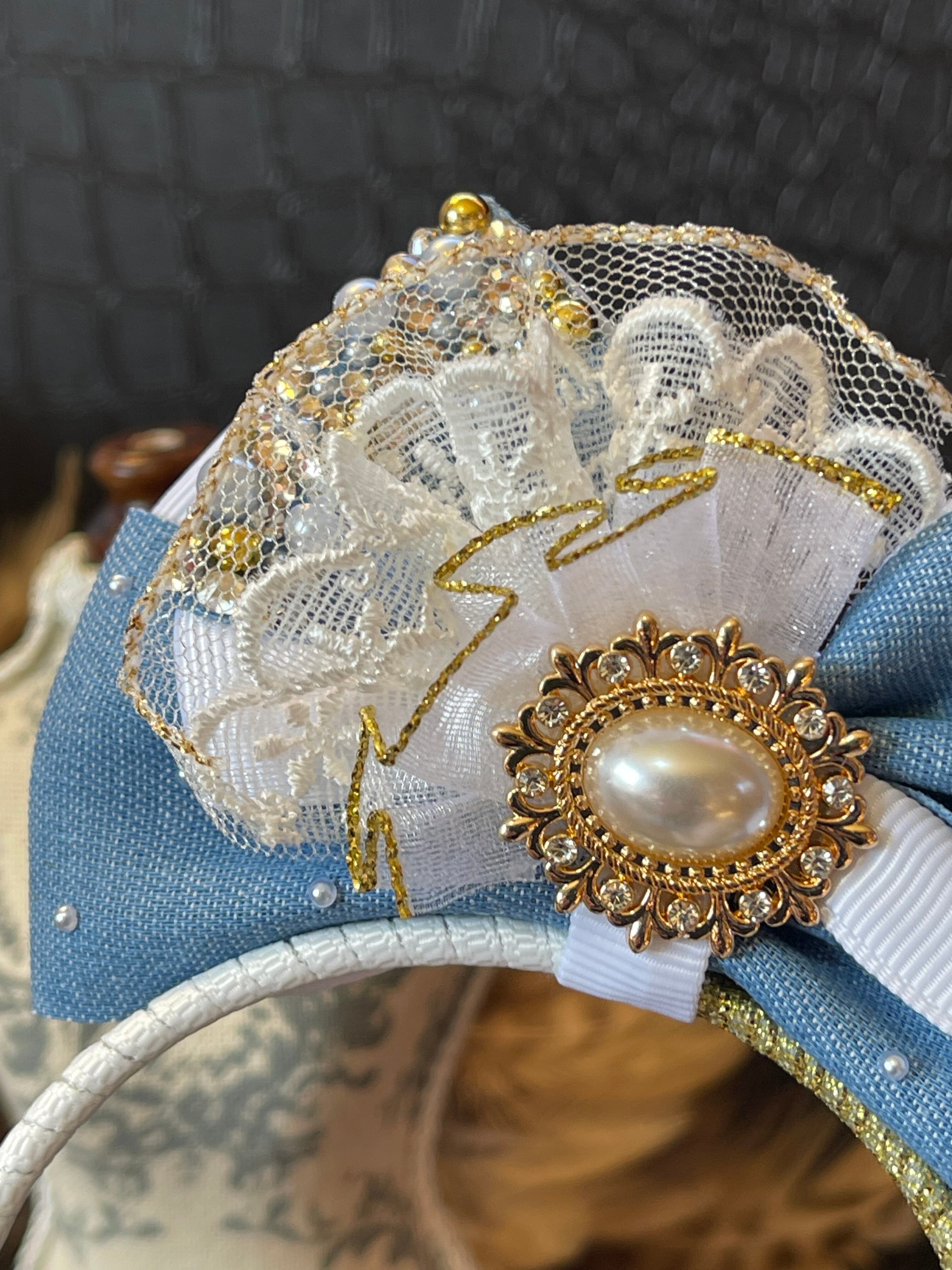 ※リボンカチューシャの(写真)右下にジュエリーチャームやレースなどを付けるオリジナルの下がりデザインです。