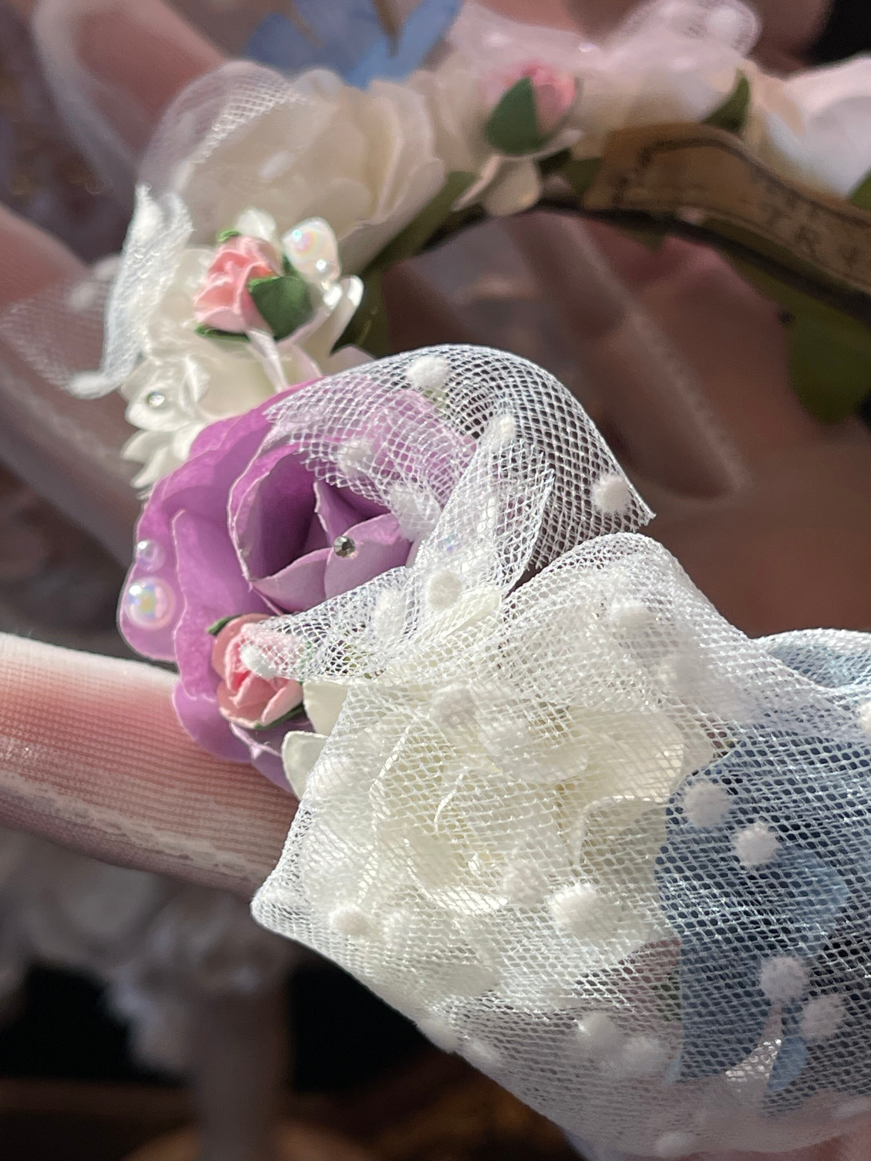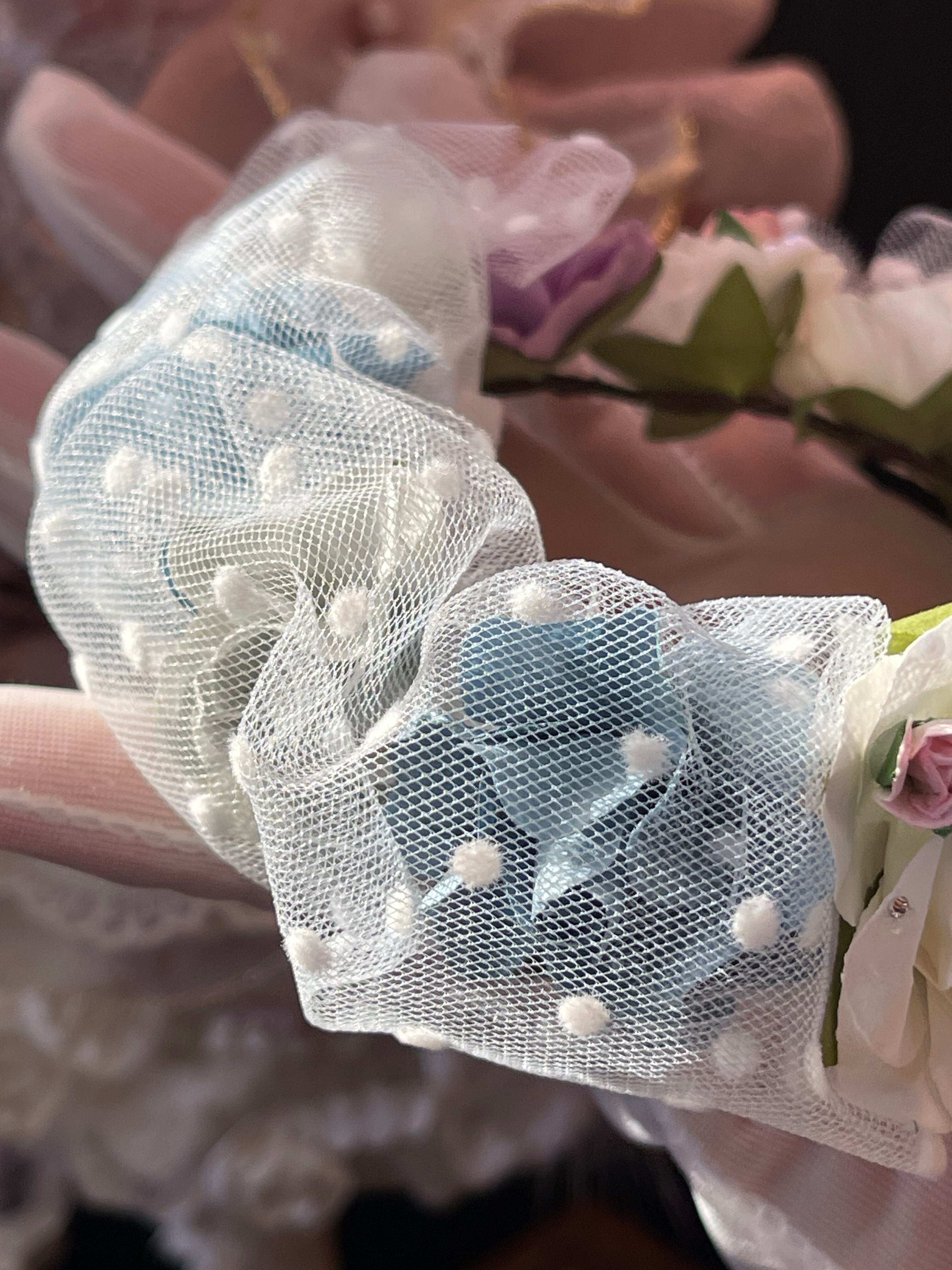 ドットチュールレースを纏った花冠となります