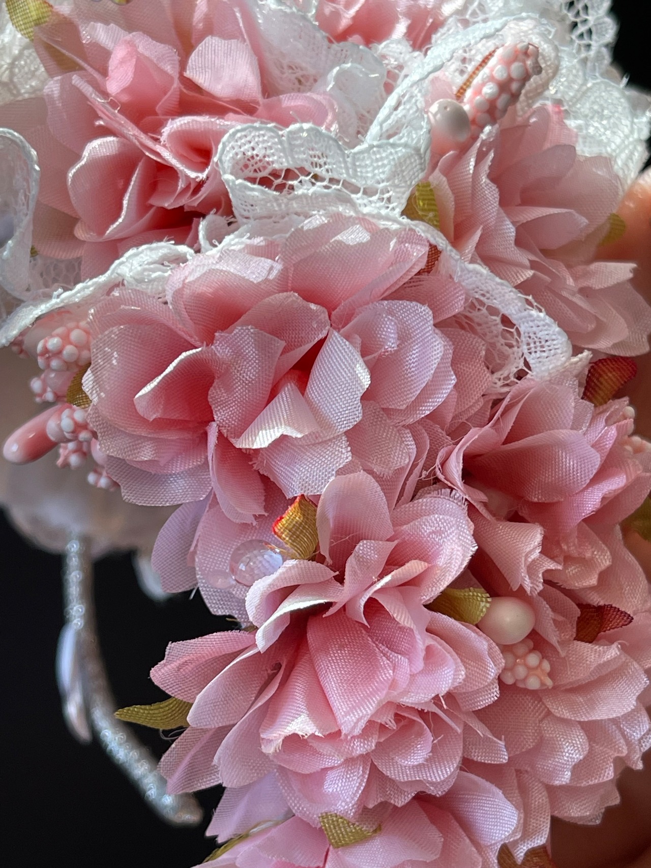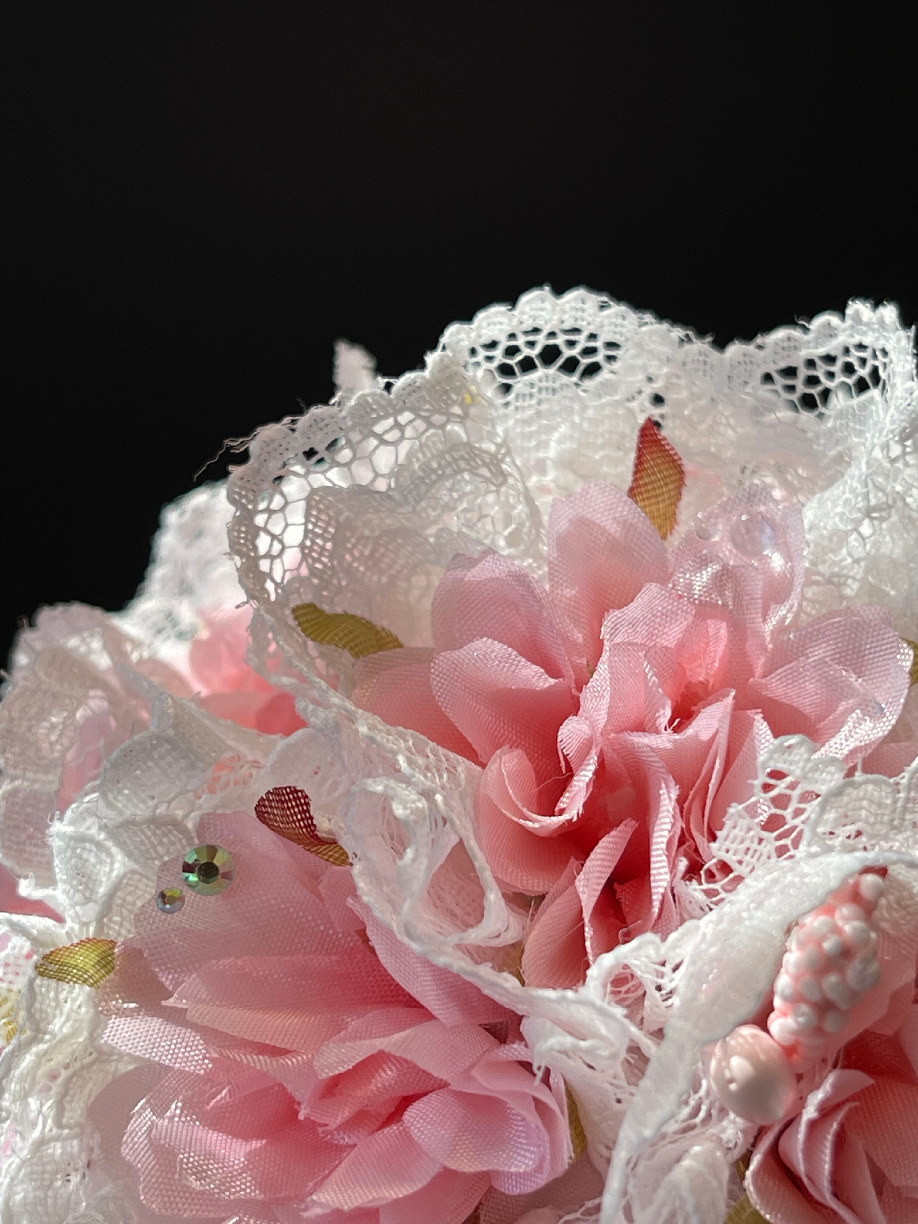 頭頂はレースを縫い込み、サイドは桜とこれから咲く