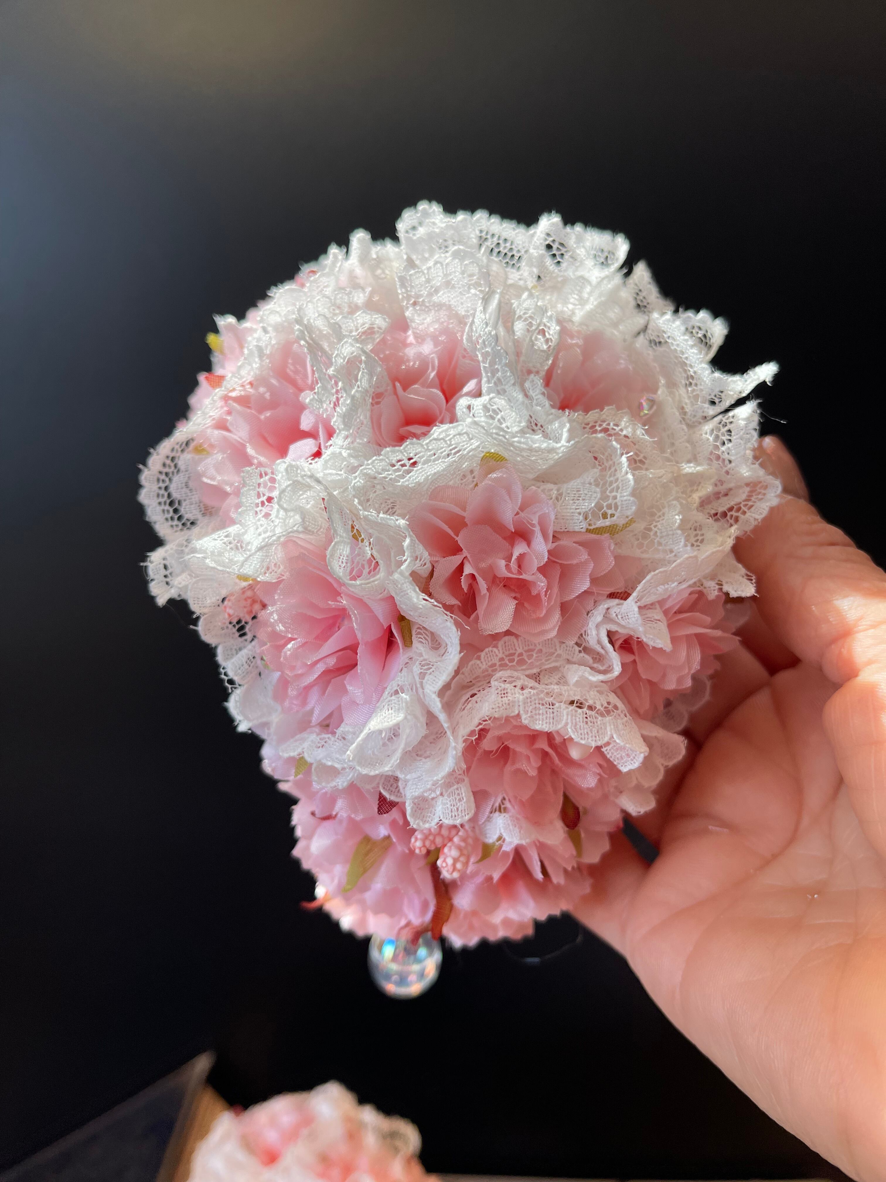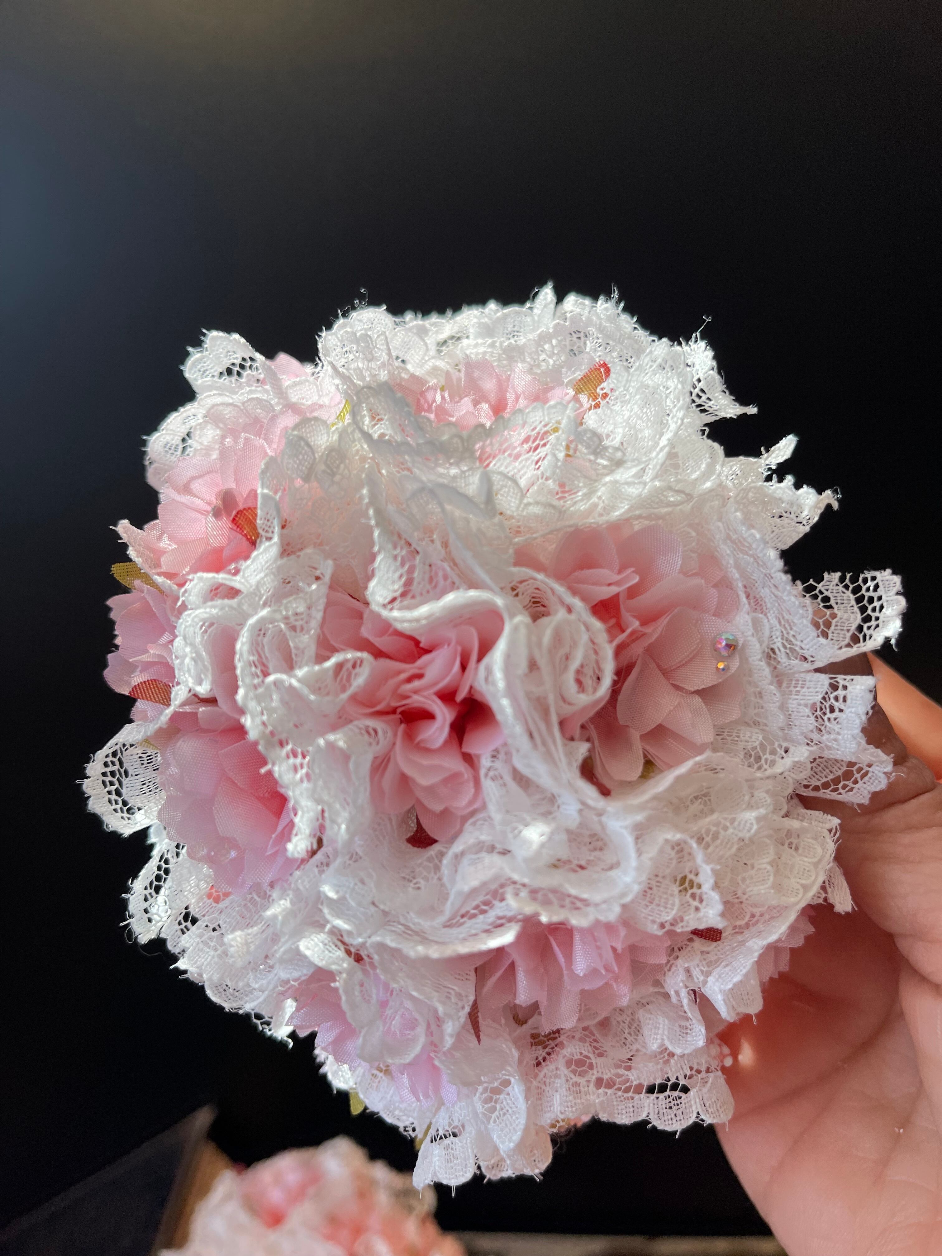 頭頂はレースを縫い込み、サイドは桜とこれから咲く